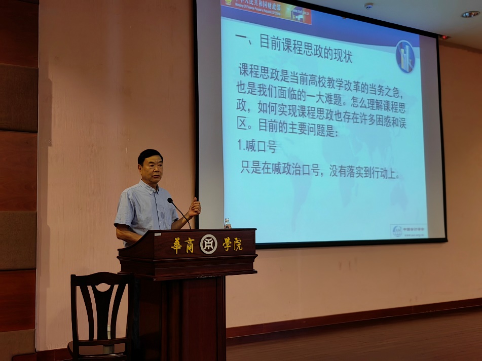 2022年9月27日下午3点,中国会计学会副会长、广州华商学院特聘教授刘永泽应邀莅临我校会议中心四楼报告厅给会计学院师生作了主题为“关于课程思政的几个问题”的讲座。华商学院副校长兼会计学院院长陈美华教授、会计学院杨旻副院长、周书域副院长以及学院多位教师和学生参加了此次讲座,讲座由会计学院副院长杨旻教授主持。