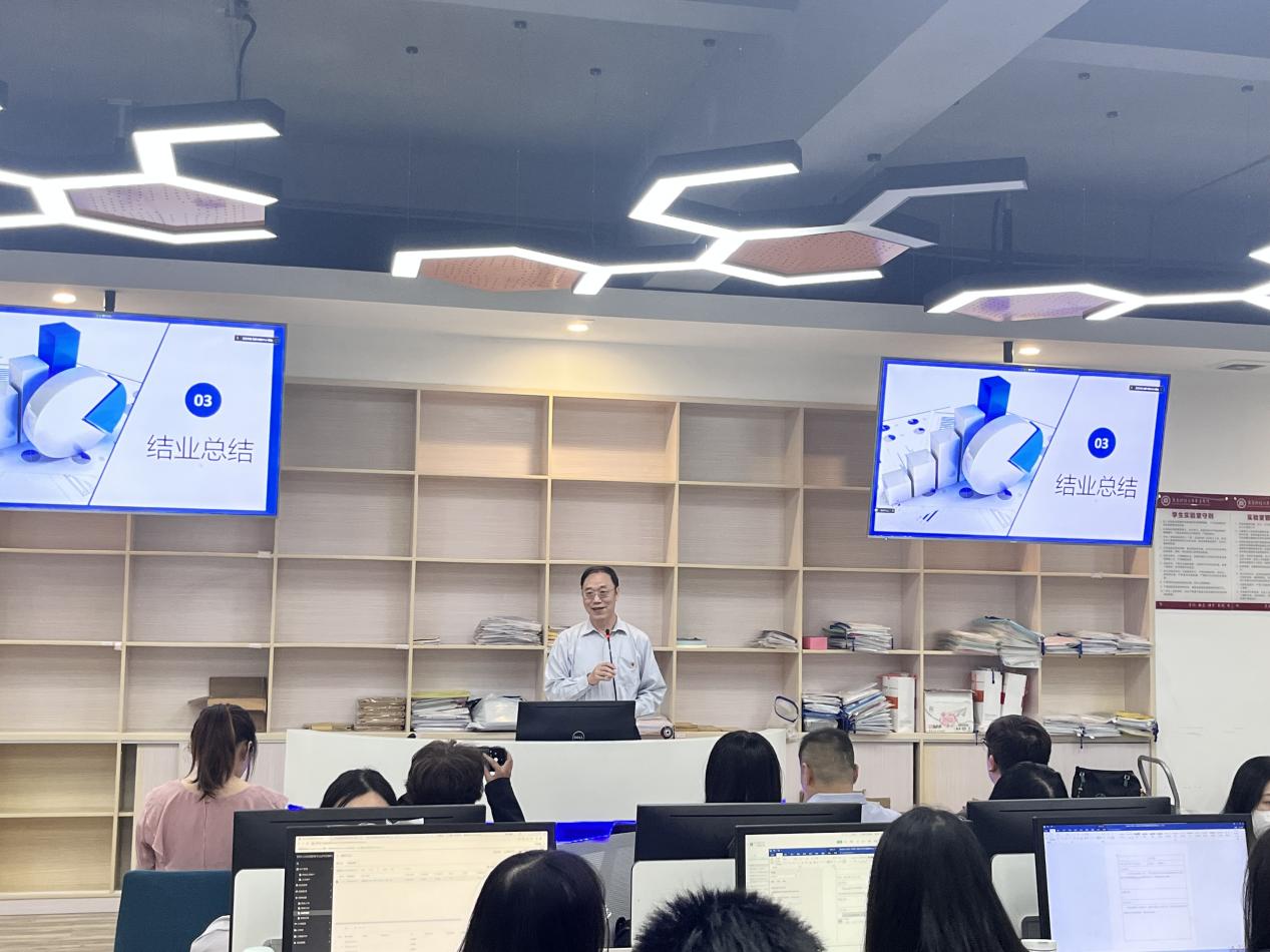 第二阶段由陈美华副校长发言,首先感谢正誉集团提供给我们这次机会,能让大家接触到真正的账簿,熟悉业务。其次感谢各位同学参与,看到大家的劳动成果颇丰,感到非常欣慰。同样感谢各位老师,辛苦构建起这个课程平台,能让平台顺利运作。会计学院和正誉公司共同推进产教融合工作,各位同学也在这里有所收获。也祝愿各位同学能利用在平台的实践知识,促进自身的发展。