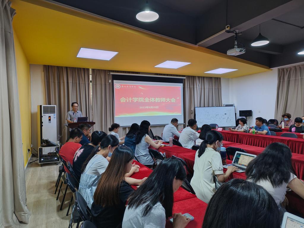 8月29日,广州华商学院会计学院召开了2023-2024-1学期第一次全体教职工大会,吕峻闽副校长出席会议并讲话。会议由周书域副院长主持。