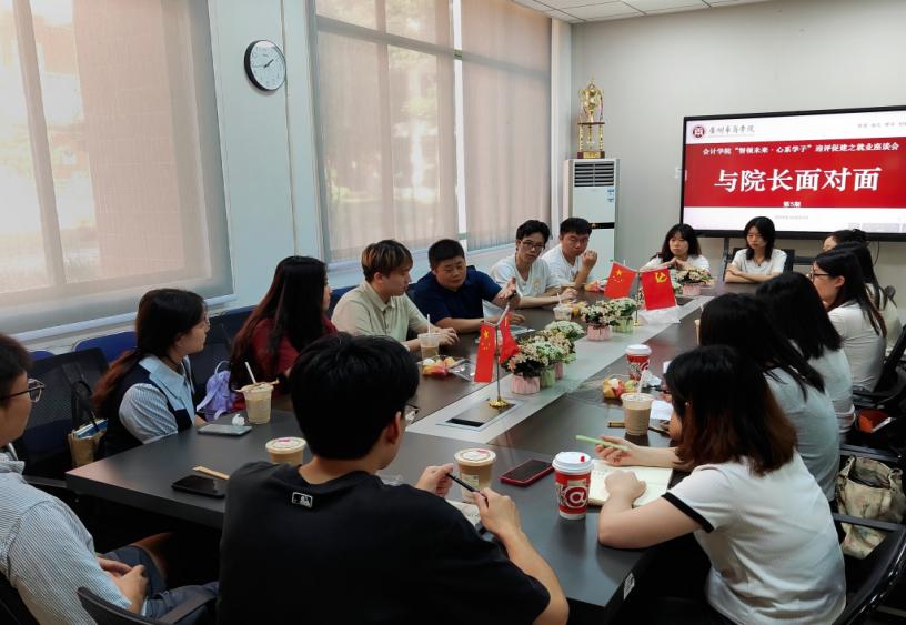 倾听学生声音,共谋未来发展。为了进一步深化人才培养体系,提升学生就业质量,10月21日下午,会计学院在广州校区会议室开展了“与院长面对面”第5期—“迎评促建与就业”座谈会。会计学院周书域副院长,辅导员余杏以及2021级15名学生代表参加。