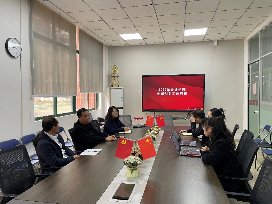 2025年2月26日下午,会计学院创新创业工作新学期部署会议在学院会议室顺利召开。会计学院院长姚凤民、党委副书记陈少鸿、院长助理陈蒙梦、学工办副主任杨烨翰、吕晓玥老师、张含笑老师等出席了会议。此次会议全面总结学院2024年创新创业工作,分析当前创新创业形势,并部署新学期的重点任务,为学院创新创业教育高质量发展注入新动力。