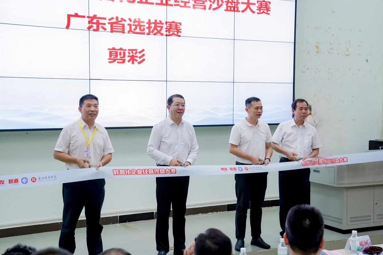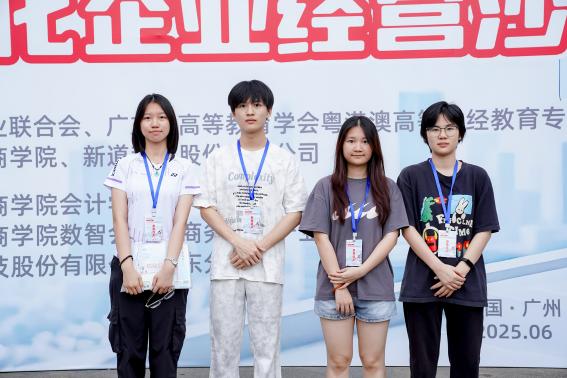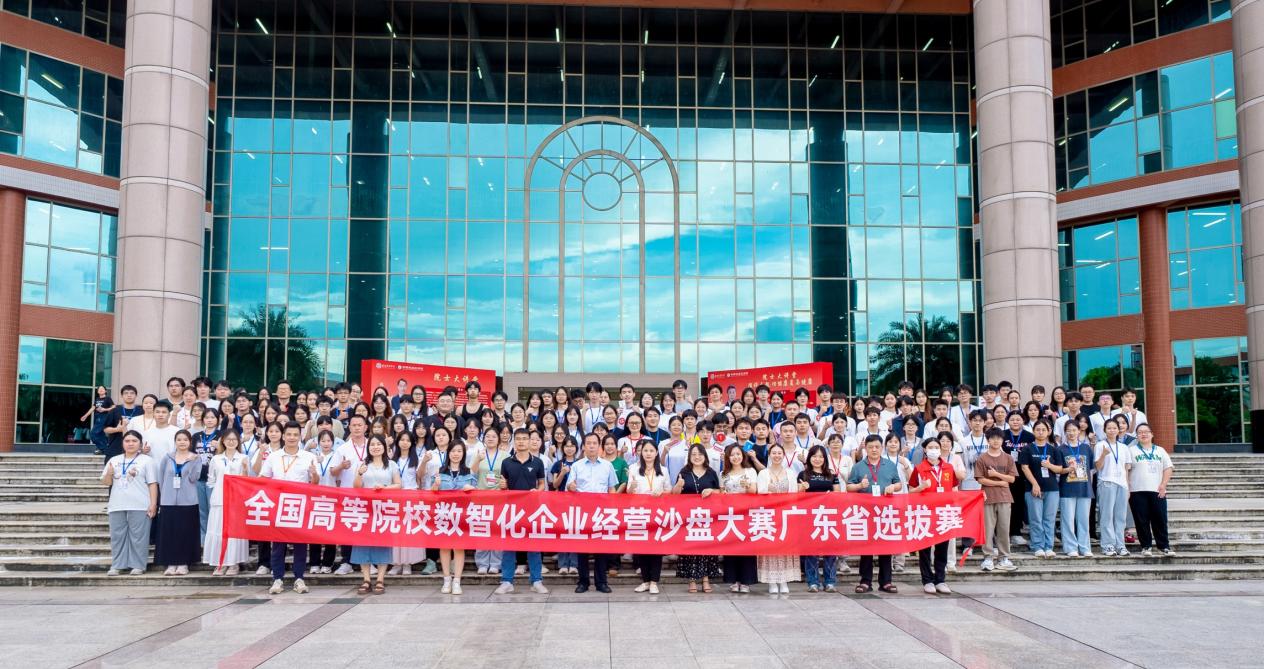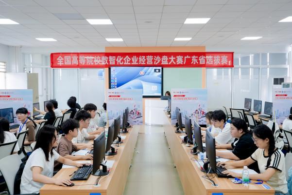 2025年6月28日至29日,由中国商业联合会、广东省高等教育学会粤港澳高等财经教育专业委员会、广州华商学院、新道科技股份有限公司联合主办,广州华商学院会计学院、广州华商学院实验教学与网络管理中心、广州华商学院 产教融合办公室、数智会计与商务服务产业学院、新道科技股份有限公司广东分公司联合承办的2025年全国高等院校数智化企业经营沙盘大赛广东省选拔赛在广州华商学院成功举办。来自广东省35所高校的80支队伍,总计320名学生齐聚一堂,以企业经营模拟为舞台,展开了一场数智化管理能力的巅峰对决。