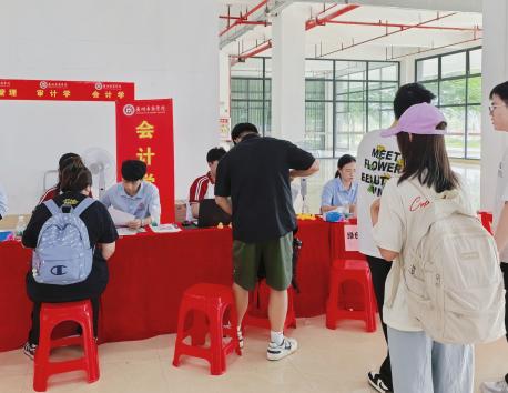 本次迎新工作紧扣“精细化、人性化”核心,充分结合会计学院专业特色,设置会计学、财务管理、审计学三个专业方向专属报到点。各报到点标识清晰醒目,办理流程规范明确,辅导员与学生志愿者分工协作、默契配合,一边高效为新生办理注册、缴费等手续,一边耐心解答专业学习、课程设置等疑问,既实现新生分流报到、精准对接服务,大幅提升报到效率,也让新生切实感受到学院的用心与温度。