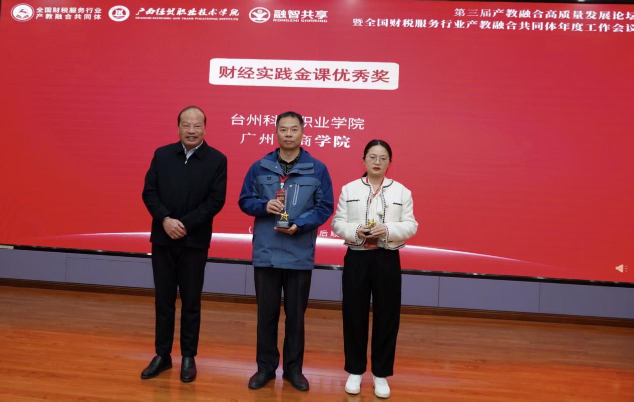 在本次会议的颁奖环节中,我校荣获全国财税服务行业产教融合共同体颁发的“财经实践金课优秀奖”。该奖项旨在表彰在财经类实践课程建设与教学改革中取得突出成果的院校,是对我校长期以来坚持产教融合、注重实践教学的高度认可。