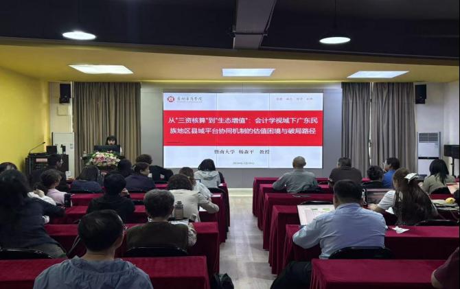 讲座中,杨教授指出当前民族地区县域平台在资源估值、资产确权、资金整合等方面存在诸多难点,传统会计框架难以充分反映生态价值与协同效益。他结合在广东乳源、连山、连南等地的调研案例,创新性地提出了构建以生态价值为核心的协同估值体系、优化县域平台治理结构、探索“资源—资产—资本”转化路径等方案,为民族地区生态价值转化与三资协同发展提供了清晰的会计破局思路。