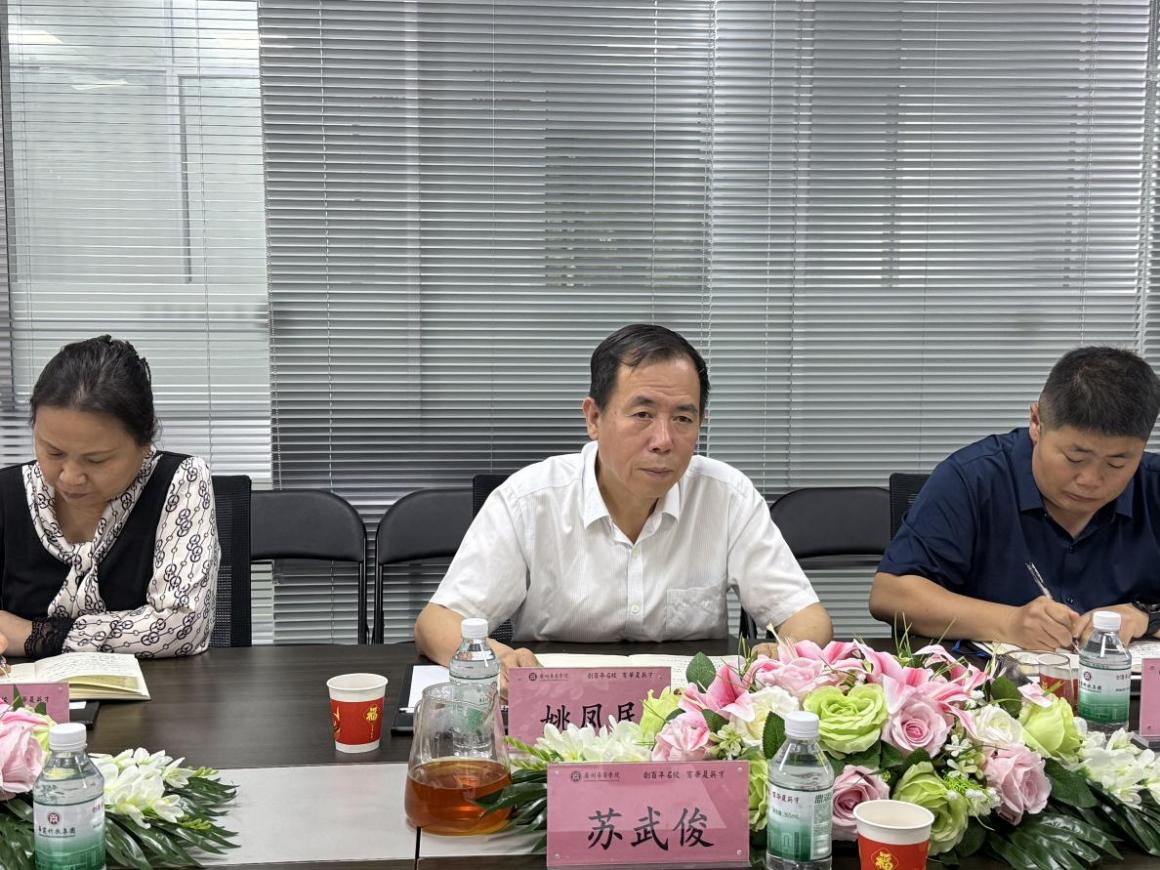 交流会上,姚凤民院长首先对苏武俊院长一行的到访表示热烈欢迎,并围绕学院发展历程、学科布局、师资建设、人才培养特色、产业学院与产教融合工作、本科教学合格评估工作进行了介绍。