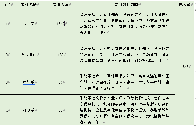 其中,会计学院、数字经贸学院和数字金融学院是我校教学科研实力雄厚的学院。三个学院以培养高水平应用型人才为根本任务,已向社会输送高水平应用型人才3万多名。2024年,会计学院现有应届毕业生1645人(会计学、财务管理、审计学和税收学4个专业),数字经贸学院现有应届毕业生407人(国际经济与贸易、经济统计学和国际商务3个专业),数字金融学院现有应届毕业生235人(金融工程、经济与金融和金融科技3个专业)。