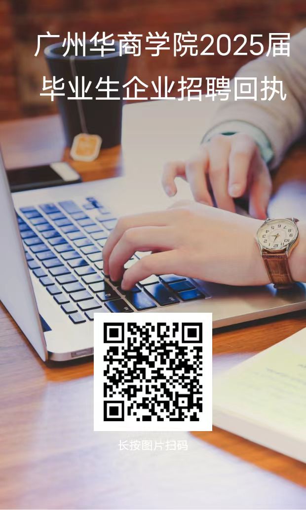 现诚挚地向贵单位发出邀请,望广纳贤才!学院将根据企业的需要,积极搭建用人单位与毕业生的就业对接平台,将于12月3日组织专场招聘会及宣讲会,如贵单位有招聘需求,请于11月27日前扫码填写《附件2:广州华商学院2025届毕业生企业招聘回执》(问卷星)并上传企业营业执照,或与学院负责就业工作老师电话联系。感谢贵单位对会计学院、数字经贸学院和数字金融学院毕业生就业工作的关心与支持!