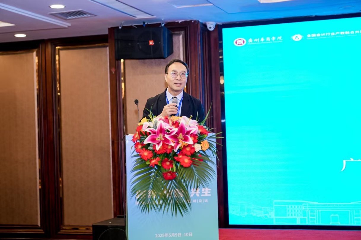 广州华商学院副校长吕峻闽教授在致辞中指出,面对数字化与全球化的双重挑战,广州华商学院以“数智化+国际化”双轮驱动模式深化产教融合,致力于培养兼具专业能力与跨界视野的复合型会计人才。他表示了对与会嘉宾的热烈欢迎,并期待本次论坛能成为推动会计教育创新发展的重要里程碑。
