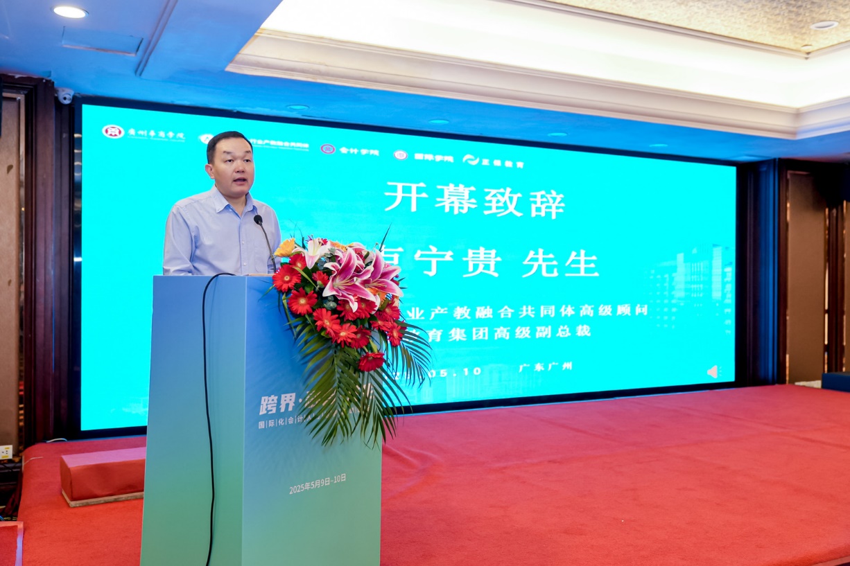 正保教育集团卢宁贵高级副总裁介绍了正保集团和广州华商学院构建的产教融合共同体在资源整合中的宝贵经验,强调校企协同对人才培养的赋能作用。