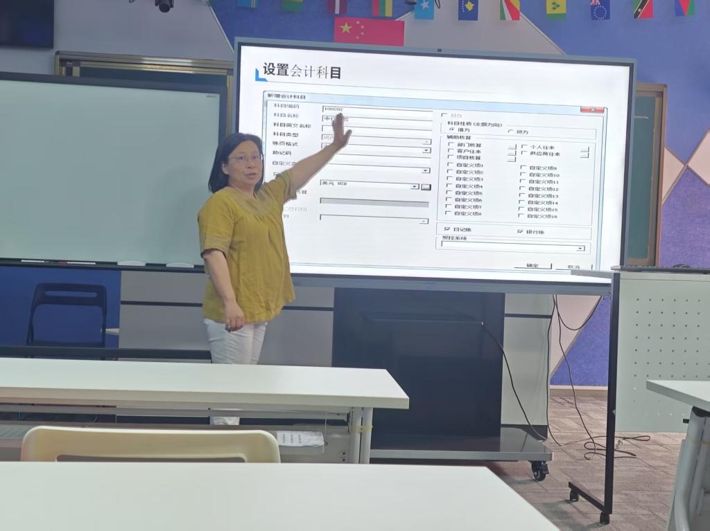 模拟授课环节,陈老师选取实验项目二作为模拟授课内容。陈老师对整套会计信息系统的账套设置进行深入介绍,并针对实验过程中容易出错的地方进行重点标注,巧妙地引发学生注意,为学生后续的实际操作奠定了坚实基础。