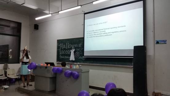 2015年10月26日(周一)晚上七点半,由14级ACCA班举办的Halloween&ACCA Brainstorming主题班会在励志楼A103进行。本次班会本着回望过去,展望未来的目的,呈现了一场趣味与学术相结合的盛宴,不仅进一步增强了同学间的凝聚力,坚定了同学们在ACCA这条道路上的决心,更是让同学们对于未来的就业以及发展问题有了更深刻的了解和认识。
