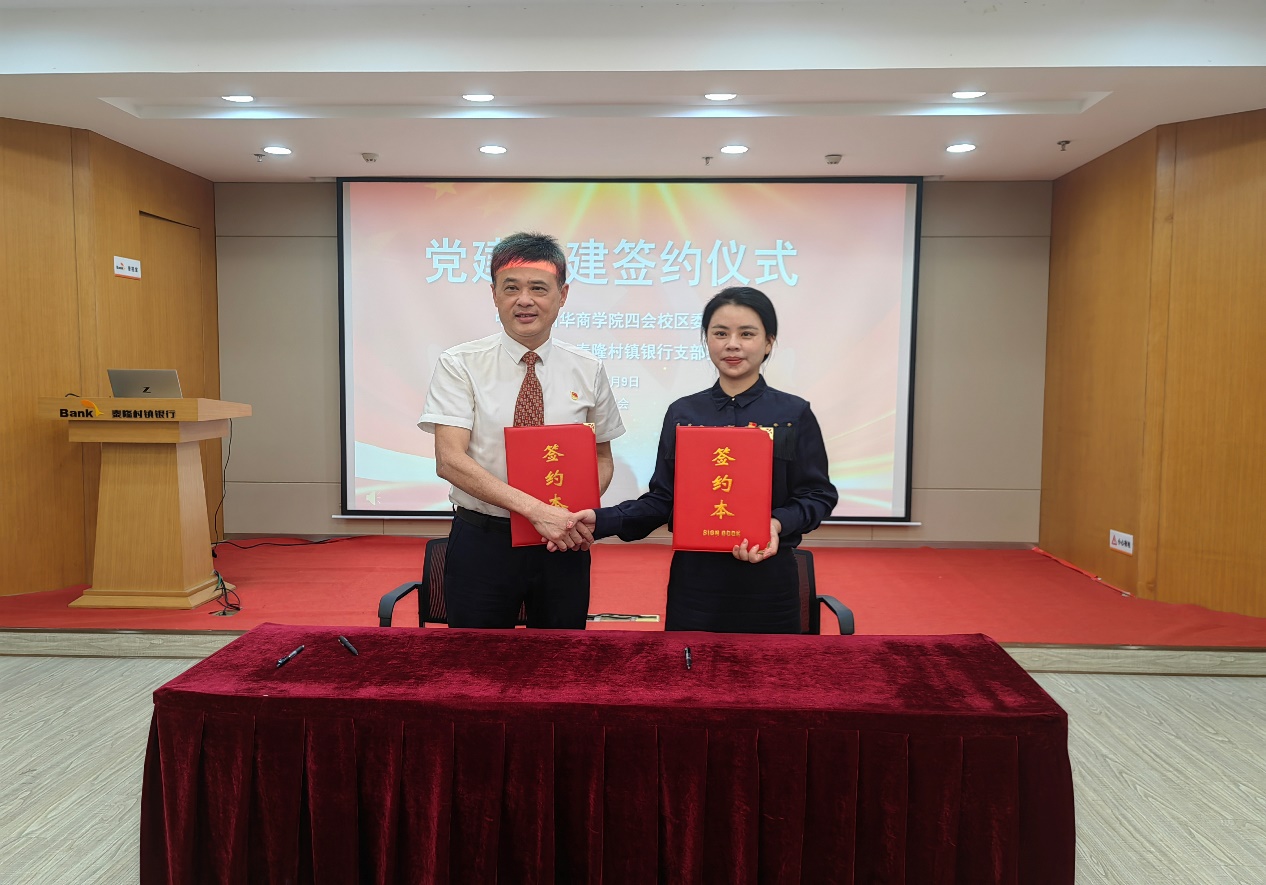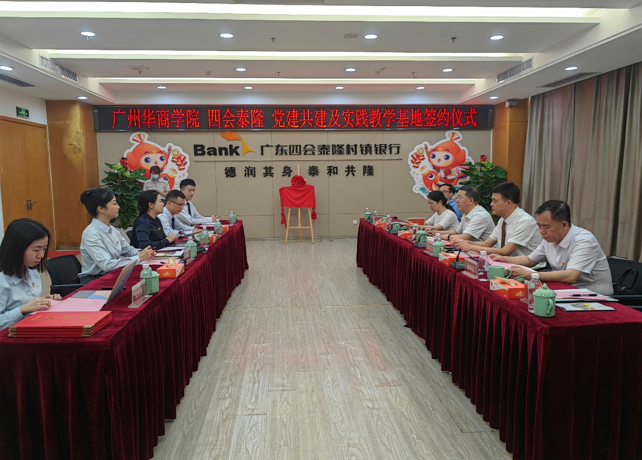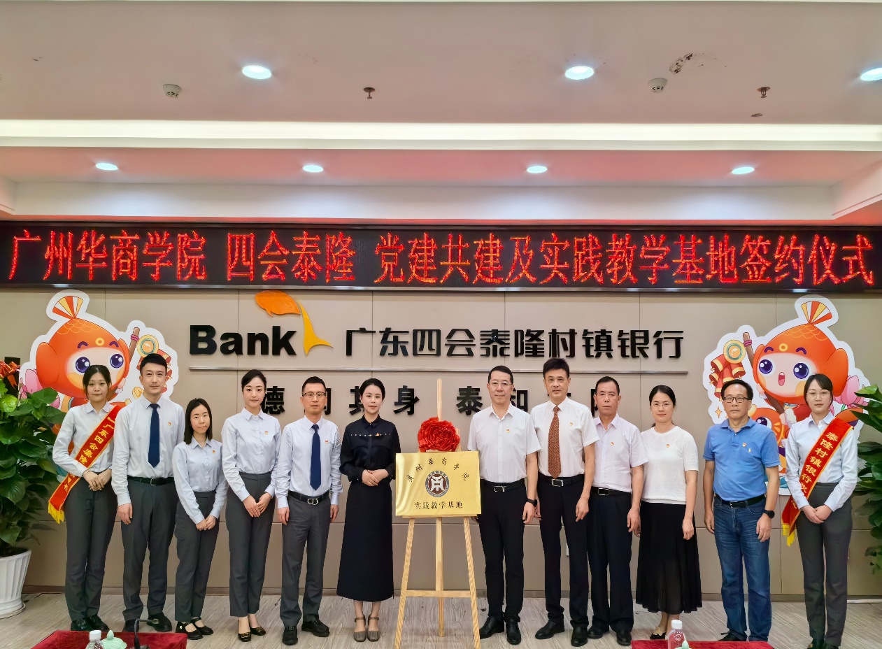 为深入贯彻落实党中央、国务院关于“稳就业,“促就业”决策部署,充分发挥校企党建合力,推进党建与业务深度融合,赋能毕业生高质量就业,5月9日下午,广州华商学院副校长吕峻闽、肇庆校区党委书记苏宁、肇庆校区党委副书记覃少冰、会计学院院长姚凤民、会计学院副院长刘善球、会计学院学工办副主任杨烨瀚一行赴广东四会泰隆村镇银行开展访企拓岗专项活动,并隆重举行了党建共建、实践教学基地签约仪式。