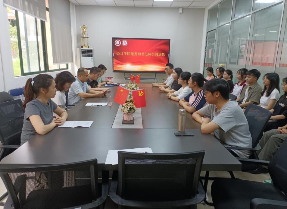 在学校党委的关怀和支持下,2025年6月5日周四晚上,会计学院党委于会计学院会议室深入开展对青年学生党员的慰问工作,表彰优秀学生党员树立榜样,关怀困难学生党员传递温暖,充分体现党组织对青年党员的关心爱护。出席本次活动的领导、老师有学院党委副书记兼副院长陈少鸿同志、党委委员兼学工办副主任杨烨瀚同志、党委组织员余杏老师以及各支部学生党员代表。