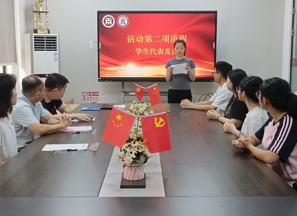 随后,学生党员代表蒋阳同学上台发言。她结合自身经历,分享了作为学生党员的成长感悟与责任担当,并代表全体学生党员感谢学院党委的关怀与支持。她表示将会把这份温暖转化为前进动力,在学习和生活中发挥模范带头作用,以更高标准要求自己,回馈组织的信任。