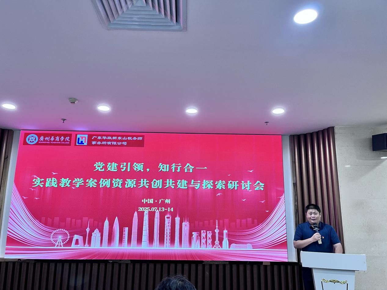 2025年7月13-14日,广州华商学院会计学院与广东华政新东山税务师事务所有限公司联合举办的"党建引领,知行合一:实践教学案例资源共创共建与探索研讨会"顺利举行。
