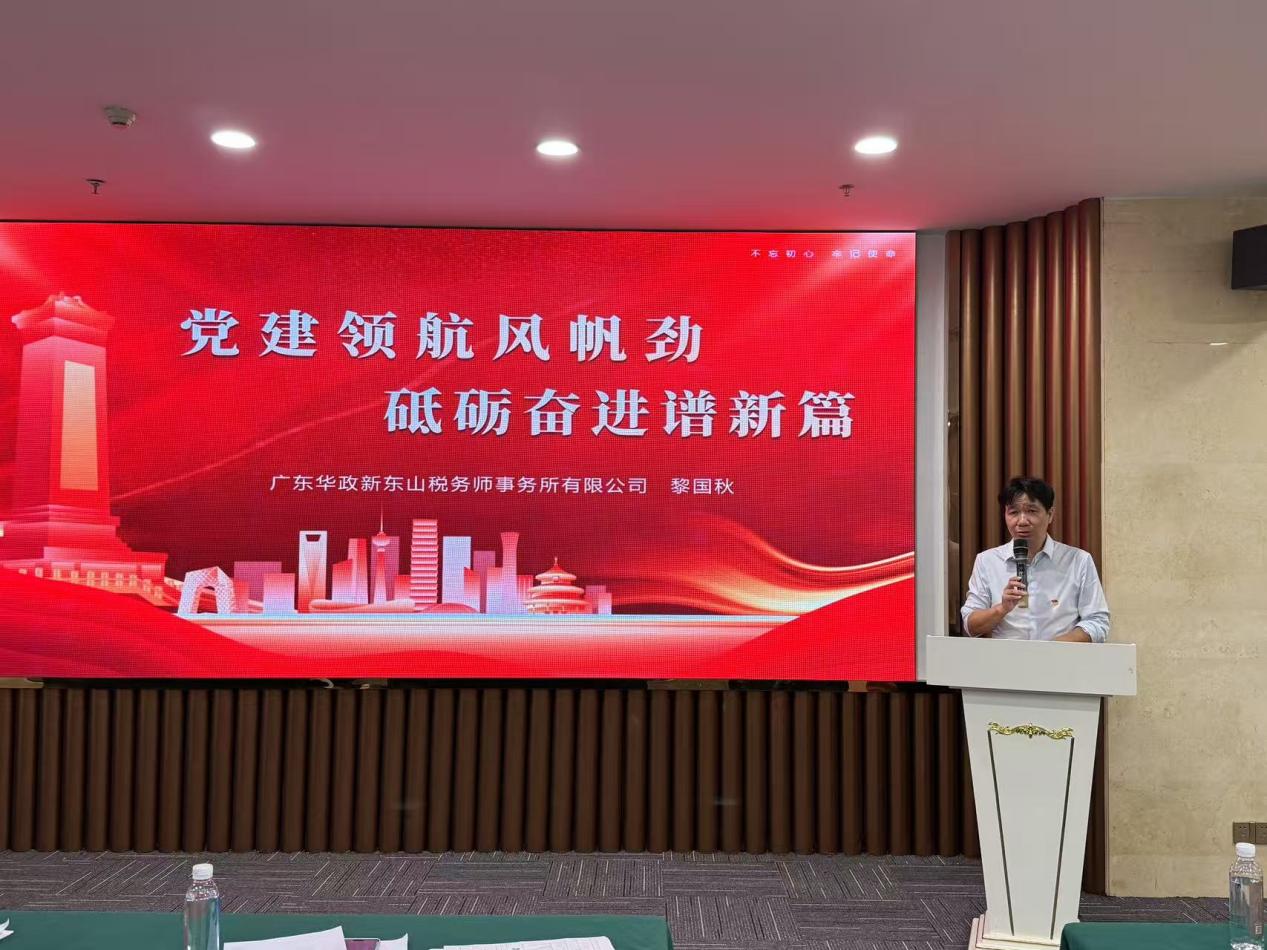 广东华政新东山税务师事务所有限公司副所长黎国秋以“党建领航风帆劲,砥砺奋进谱新篇”为题展开分享,紧扣“党建引领”核心,聚焦如何将党建工作与思政教学需求相结合。其分享内容立足事务所党建实践,探索将党建元素转化为思政教学资源的路径,为校企在实践教学中融入思政教育提供了可借鉴的思路,助力实现党建与思政教学的深度联动。