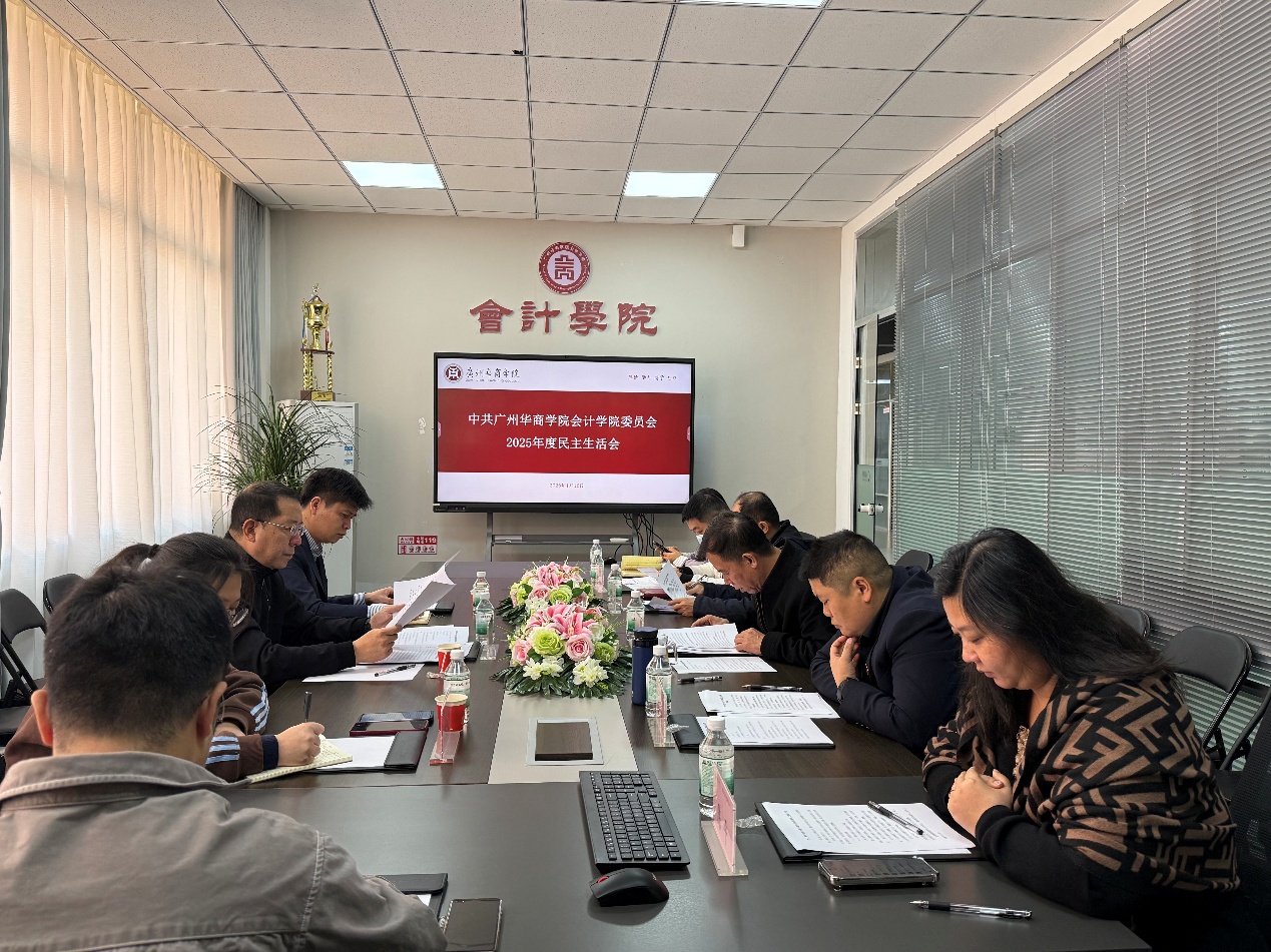 2026年1月16日,广州华商学院会计学院党委在会计学院会议室召开2025年度民主生活会。此次会议以深入学习贯彻习近平新时代中国特色社会主义思想,全面贯彻落实党的二十届四中全会精神,以打攻坚战、持久战的决心和恒心,锲而不舍落实中央八项规定精神,推进作风建设常态化长效化,以优良作风凝心聚力、真抓实干,奋力开创中国式现代化建设新局面为主题,通过深入剖析问题、强化自我革新,为迎接学校本科教学合格评估奠定坚实的思想和组织基础。学校党委副书记、纪委书记、副校长吕峻闽,学校纪委委员、纪检办公室主任黄秋铭列席指导,学院院长助理陈蒙梦、陈平列席会议,学院党委书记姚凤民主持会议并作总结讲话,学院党委班子全体成员参加会议。