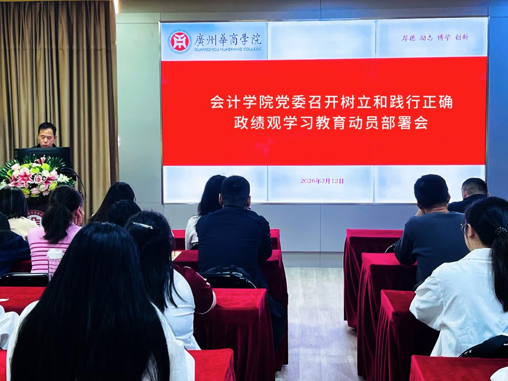 为深入学习贯彻习近平总书记关于树立和践行正确政绩观的重要论述,全面落实党中央及学校党委工作部署,以正确政绩观引领学院高质量发展,2026年3月12日,广州华商学院会计学院党委召开树立和践行正确政绩观学习教育动员部署会。学院党委书记姚凤民主持会议并作动员部署讲话,学院党委委员、各党支部书记及部分党员代表参会。