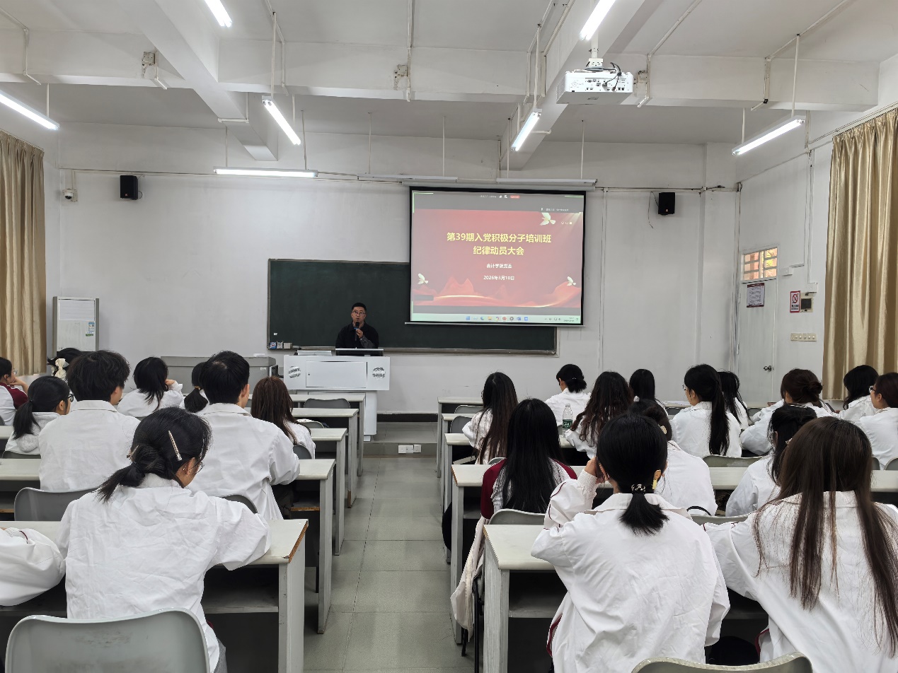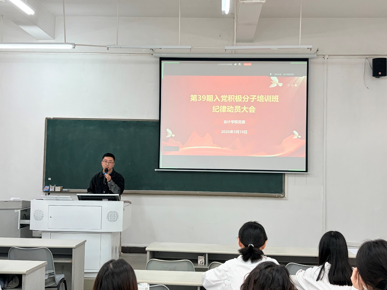 2026年3月10日15时,广州华商学院会计学院于广州校区励志楼A103组织召开会计学院党委拟推荐参加学校第39期入党积极分子培训班纪律动员大会。此次会议紧扣严守培训纪律、端正入党动机核心要求,对我院推荐参加本次入党积极分子培训班的学员作动员部署。学院经严格考察推荐、重点培养的63名入党积极分子参会,会议由学院党建组织员张大鹏主持。