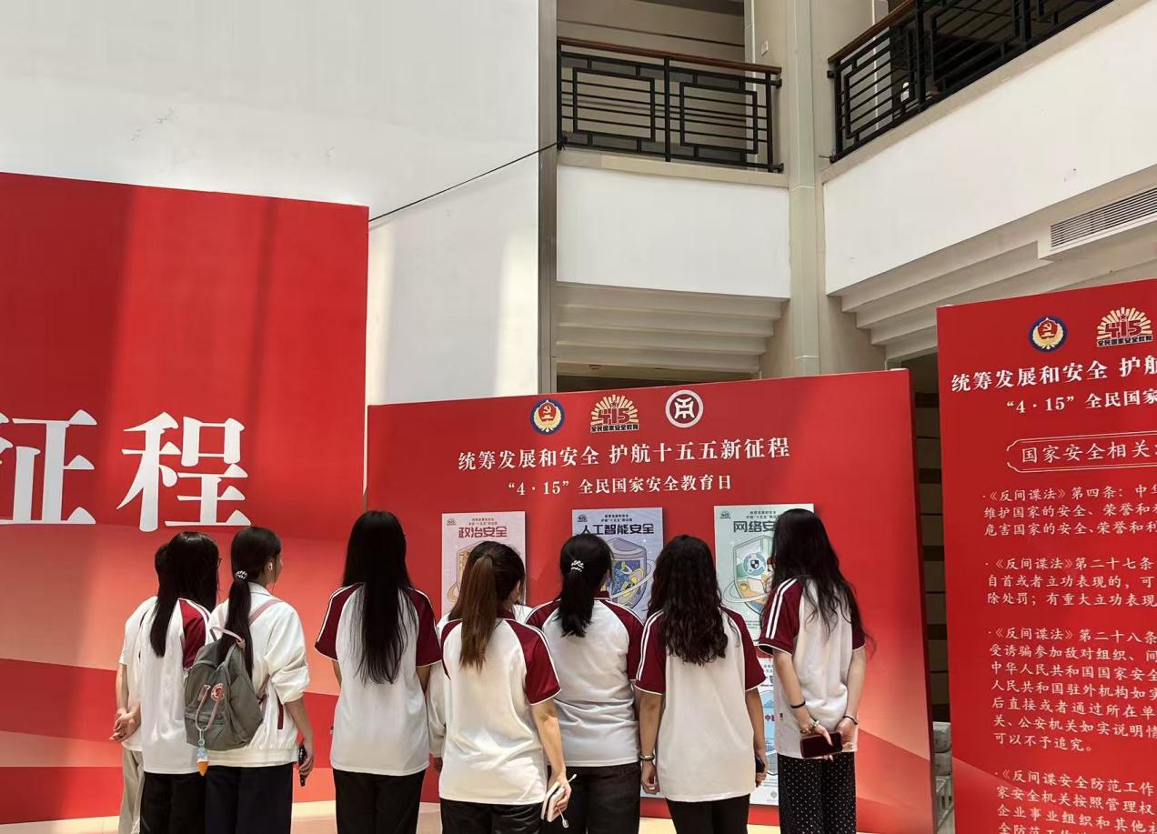 本次主题展览由学校党委宣传部主办,展期为4月14日至25日。展览以总体国家安全观为核心,通过图文展板、案例解析、法规解读等多种形式,系统呈现了政治安全、经济安全、网络安全、人工智能安全等国家安全各领域的核心内涵、法律法规与风险防范知识,全面阐释了总体国家安全观的重大意义、核心要义和实践要求,生动展现了国家安全与国家发展、民生福祉的紧密联系。