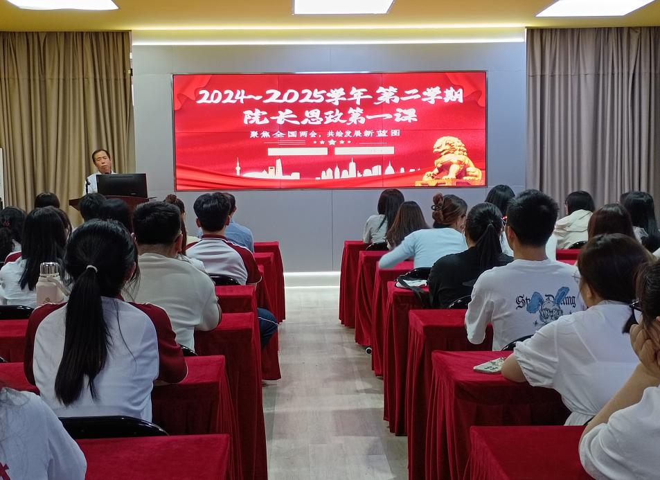 4月15日,姚凤民院长以全国两会精神为引领,深入学习贯彻习近平新时代中国特色社会主义思想,引导学生树立正确的世界观、人生观、价值观,增强使命担当意识为主题,为学生们上了思政第一课。