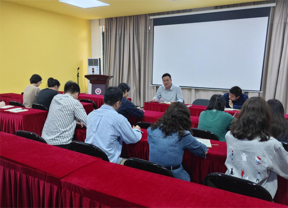 随后,陈洋广副书记传达了学校党委会和学工会议精神,聚焦高质量发展,对党建引领、安全稳定、队伍建设、师德师风、心理教育、学院宣传、就业服务和校友工作等作了具体的工作部署。
