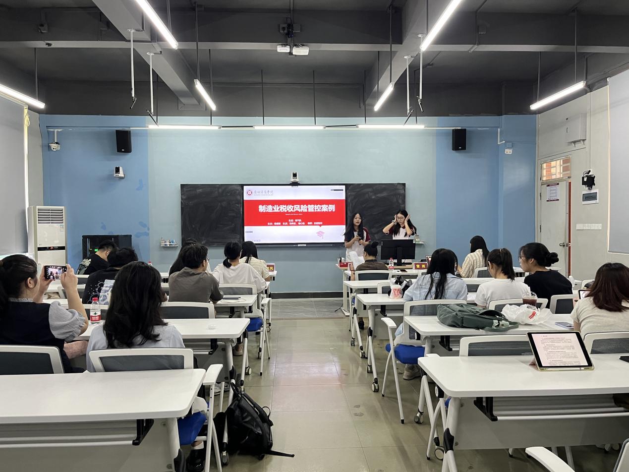 为应对基于大数据、互联网+所构建的税收风险管理体系所带来的理念与实践变化,深化产教融合激发大学生学习税法和财税知识的兴趣,培养学生综合素质和解决问题的能力,同时为全国本科院校税收风险管控案例大赛分区赛选拔和培育优秀参赛队伍,9月28日,由会计学院税务系系主办的“2024年全国本科院校税收风险管控案例大赛校内赛”在广州校区励志楼D202圆满举行。会计学院税务系张翠凤教授、李志凤副教授、雷雨、王小芳和张嘉明等老师出席本次比赛并担任校内赛赛评委。