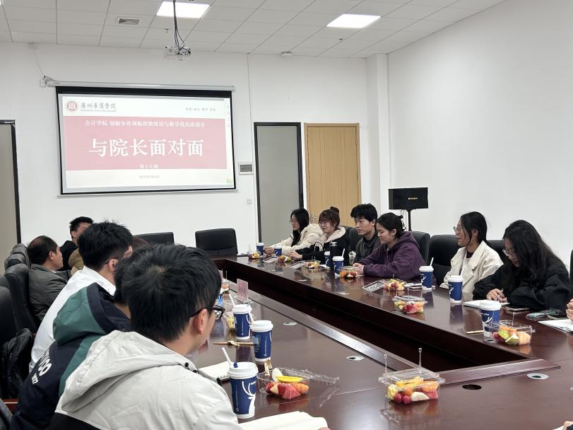 为扎实推进本科教学合格评估工作,激发班级创新争优积极性,3月6日下午,会计学院在肇庆校区会议室开展了“与院长面对面”第17期——迎评促建之班级创新争优促教学座谈会。会计学院副院长陈少鸿、学工办副主任杨烨瀚、辅导员朱菲菲老师与23级15名学生代表参加。