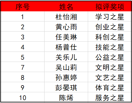 为提升新时代高校思想政治教育工作成效,促进大学生全面发展,着力培育志存高远、德才并重、勇于开拓、积极进取的时代新人,充分发挥典型引领作用,会计学院根据广州华商学院《关于评选第三届“校园之星”的通知》、《关于华商学院“十大校园之星”评选办法的通知》文件精神,坚持公开、公正、公平的原则,严格按照评选程序,经个人自主申请、年级推荐和学院评审,我院决定拟推荐杜怡湘等10名同学参评广州华商学院第三届“十大校园之星”评选。现将推荐名单公示如下: