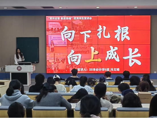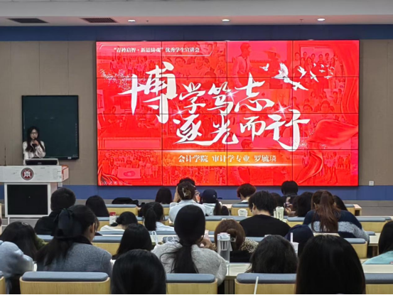 两期宣讲会吸引了近300名学生参与,通过身边榜样的鲜活故事,激发了同学们对标先进、追求卓越的内生动力。未来,会计学院将持续举办以“先进典型引领”为主题的宣讲会,搭建学生之间的成长交流平台,助力学子在青春的赛道上奋力奔跑!