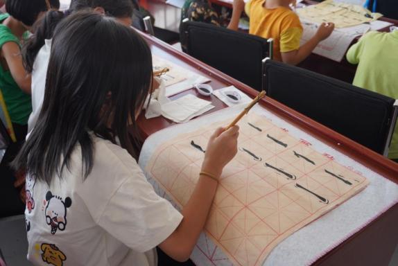 从简单的笔画练习,到逐渐尝试书写完整的汉字,他们的专注令人动容。在这个数字化的时代,能静下心来,用毛笔书写汉字,感受笔尖与宣纸的摩擦,体会汉字的韵味,是一种难得的体验。一笔一划间,传统文化的种子也在他们心中悄然种下,原本歪歪扭扭的字迹慢慢变得工整有力。他们在反复练习中培养专注力、观察力与对传统文化的认同感,让笔墨成为连接古今的桥梁。