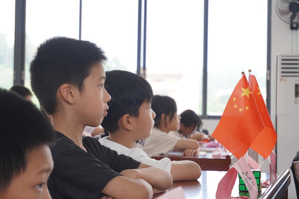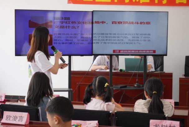 上午的课程将近尾声,一场热闹的红史问答紧接着拉开序幕,成了红色知识的欢乐派对。在必答题环节,小朋友们沉着应答;到抢答题部分时,更是小手齐举,争相答题;做到风险问答时,则见各小队成员集思广益,携手合作,共同奋进。从一开始的广宁的红色文脉有哪些,到详细的百寮顶战斗的具体故事细节;从《红星闪闪》的诞生条件,再到五四运动的深远影响,孩子们的作答都又快又准。大家眼中的光,皆如红星闪耀!