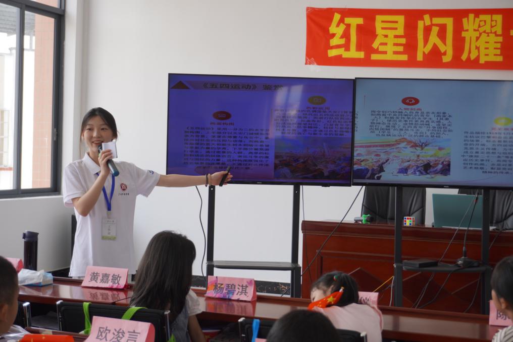传承红色基因、赓续红色血脉,是新时代党赋予教育工作者的重要使命与责任担当。7月14日,广州华商学院会计学院“扬帆起航,筑梦成长”青年实践团于肇庆市广宁县南街街道红星社区开展了一系列红色主题教育活动。通过红歌传唱、画说党史、红色之旅、知识问答、传统剪纸,将红色文化以生动活泼的方式传递给青少年,让红色基因在欢声笑语与青春热血中薪火相传,深深浸润着少年儿童的心田,滋养着他们的精神世界。