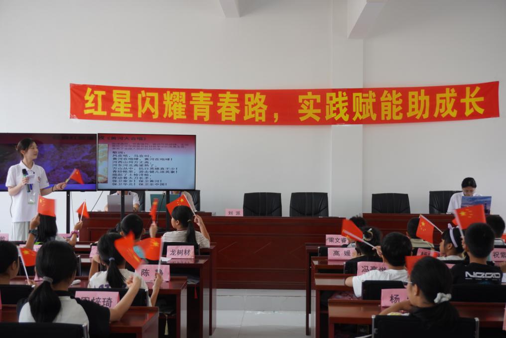 红歌是时代的号角,《黄河大合唱》的激昂旋律一响起,仿佛能看见黄河浪涛里的抗争;《红星闪闪》的明快节奏中,红星的光芒点亮了温润的眼睛。小朋友们在实践团成员的引领下,小手挥舞着红旗,伴着旋律缓缓吟唱,他们从“风在吼,马在叫”中领悟到坚韧不拔的精神,在“红星熠熠生辉”里升起未来的希望。