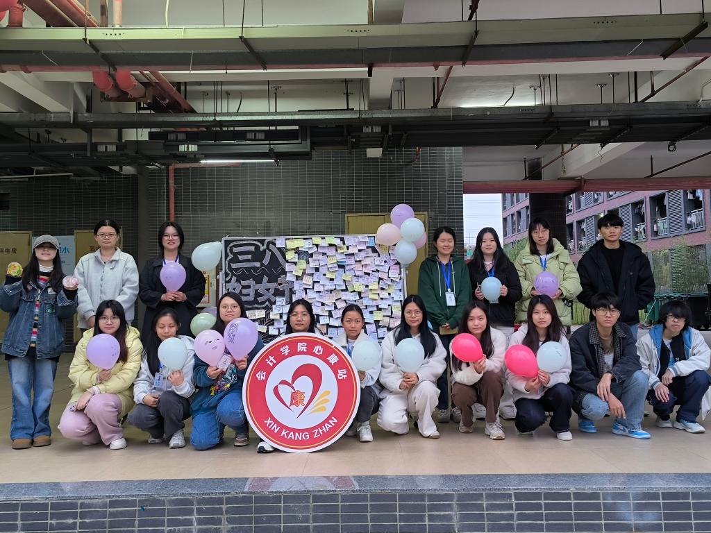 2025年3月7日傍晚,会计学院心康站在肇庆校区3-4号楼架空层举办了“三八妇女节”主题摆摊活动。通过暖心留言、节日赠礼等互动环节,我们与师生共赴一场关于成长、自信与爱的春日之约,传递女性力量,书写温情篇章。