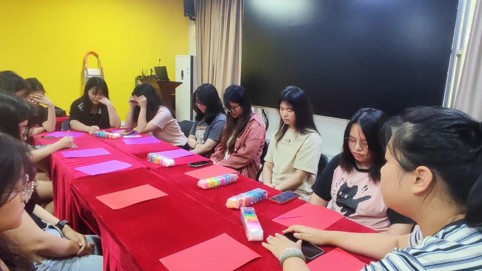 在活动的核心环节——正念冥想中,同学们在老师的引导下,闭上眼睛,深呼吸,将注意力集中在雨滴落下的节奏上,感受雨滴的轻重、快慢,以及落在不同物体上的声音变化。老师通过语言引导,让学生将注意力集中在当下的声音上,感受雨声的细腻与宁静,让身心逐渐放松。冥想过程中,仿佛让同学们进入了一个全新的世界,所有的烦恼与压力都在雨声中逐渐消散,留下的只有内心的平静与安宁。