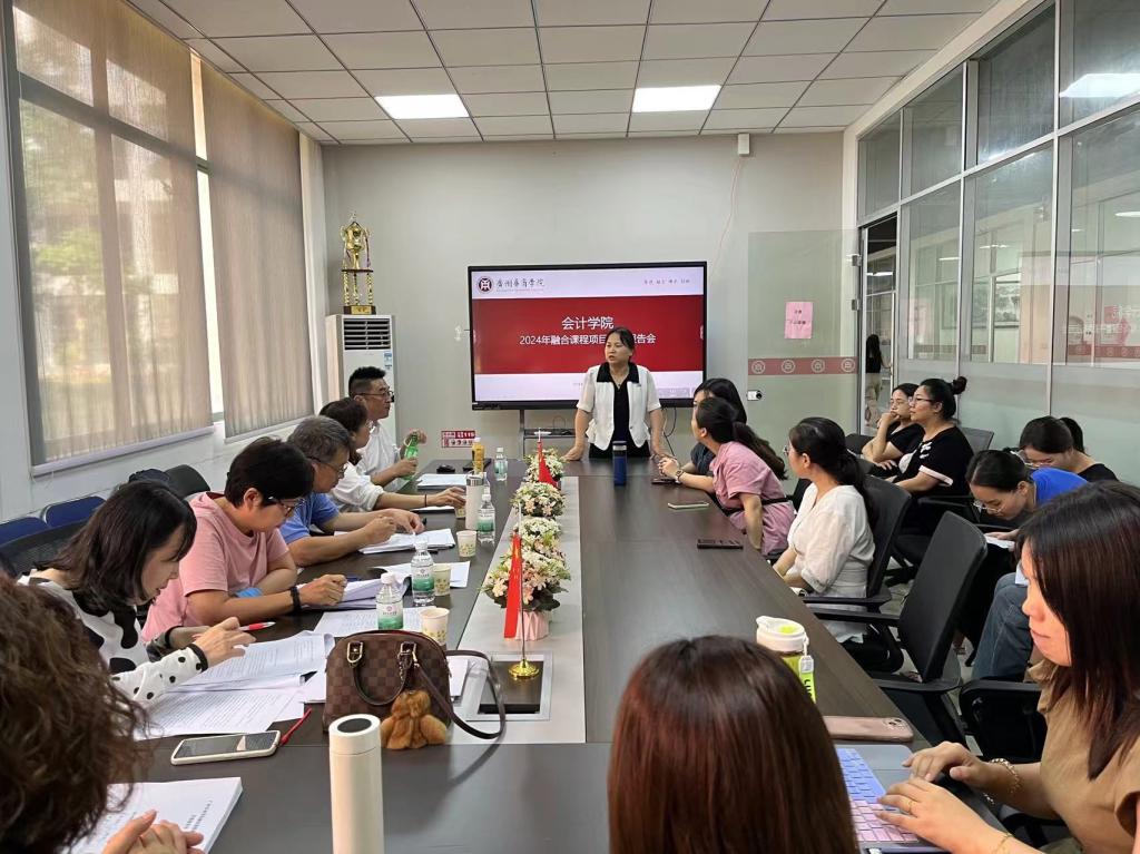 2024年10月15日下午,我院顺利召开了2024年度融合课程项目开题报告会,会议由杨旻副院长主持。此次会议邀请了多位资深专家担任评议委员,包括广东外语外贸大学刘中华教授、广东财经大学于成学教授、广东金融学院王小燕教授、广州华商学院魏玲教授以及崔莉教授。2024年度融合课程项目的全体负责人参加了会议。