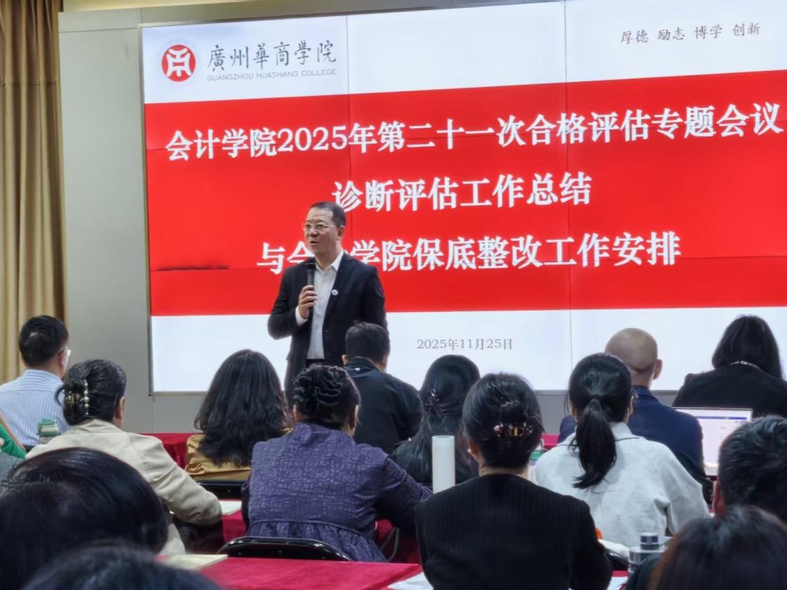 2025年11月25日,会计学院组织召开2025年度第二十一次本科教学工作合格评估专题会议,吕峻闽副校长莅临会议并讲话,学院全体教职工参会,会议由周书域副院长主持。