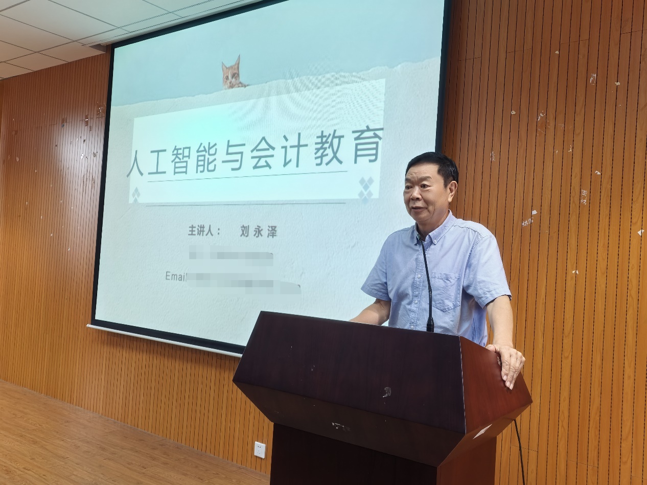 2024年10月18日,广州华商学院会计学院在广州校区厚德楼B502举办了一场主题为“人工智能与会计教育”的学术讲座。本次讲座特邀中国会计学会原副会长,中国会计学会会计教育专业委员会原主任委员刘永泽教授主讲,副院长刘善球教授担任讲座主持人。讲座吸引了众多教师参加,共同探讨人工智能对会计教育的深远影响及未来发展趋势。
