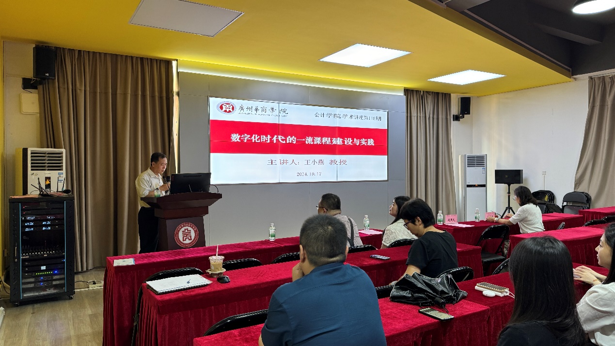 2024年10月17日下午,会计学院邀请广东金融学院实验教学中心主任王小燕教授为会计学院师生做题为“数字化时代的一流课程建设与实践”的主题讲座,讲座在学院报告厅举行。会计学院申报各级一流课程、融合课程等课题的专任教师,部分学生参加了讲座。