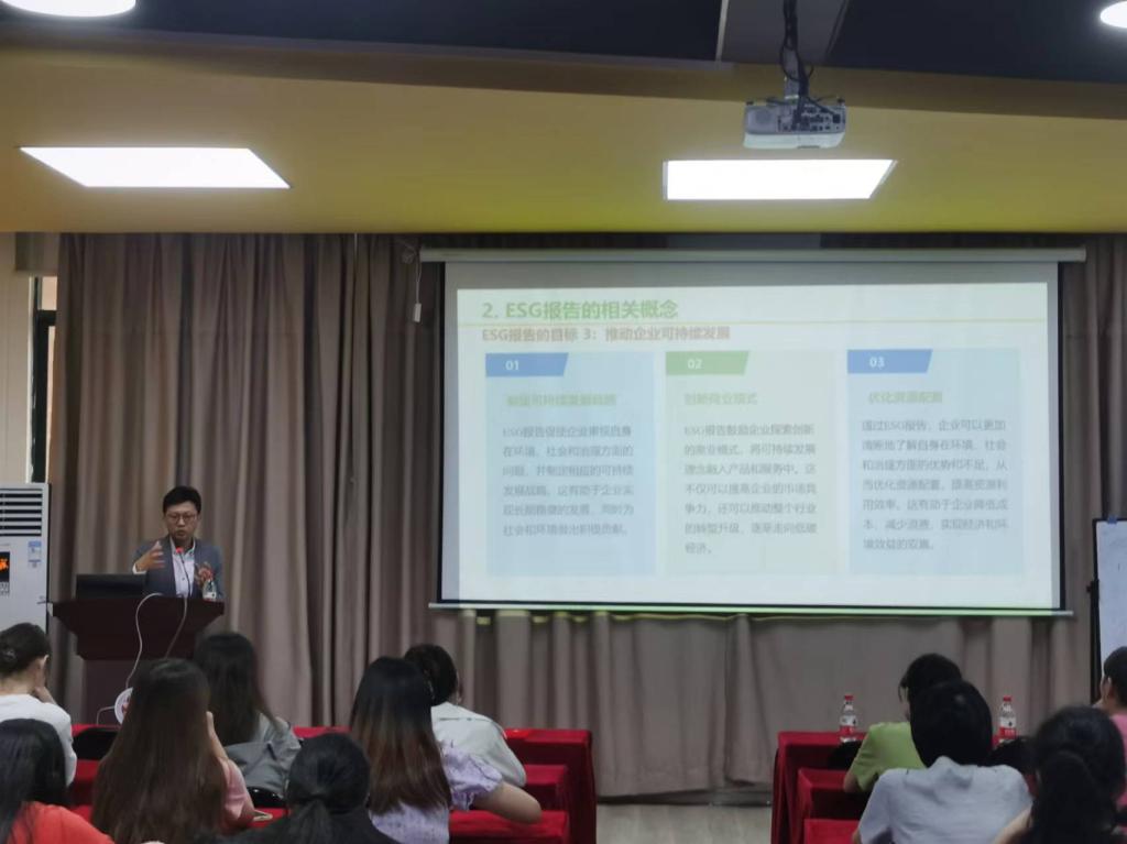 讲座环节中,黄晓刚教授首先回顾了ESG的基本概念,从多个维度详细解读了ESG报告的基本框架,并结合具体案例,展示了ESG报告在企业实践中的重要作用。