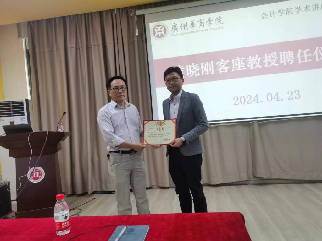 讲座开始前,学院举行了客座教授聘任仪式,我院聘任黄晓刚先生为学院客座教授,副院长刘善球向黄晓刚颁发了客座教授聘书。