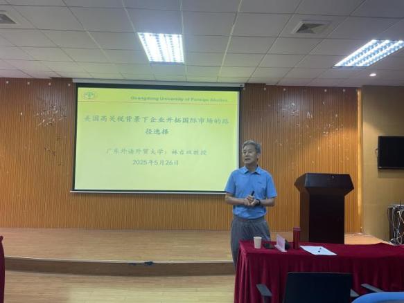2025年5月26日下午,会计学院财务系特邀广东外语外贸大学林吉双教授,于厚德楼B407开展《美国高关税背景下企业开拓国际市场的路径选择》专题讲座,解析外贸企业破局策略。