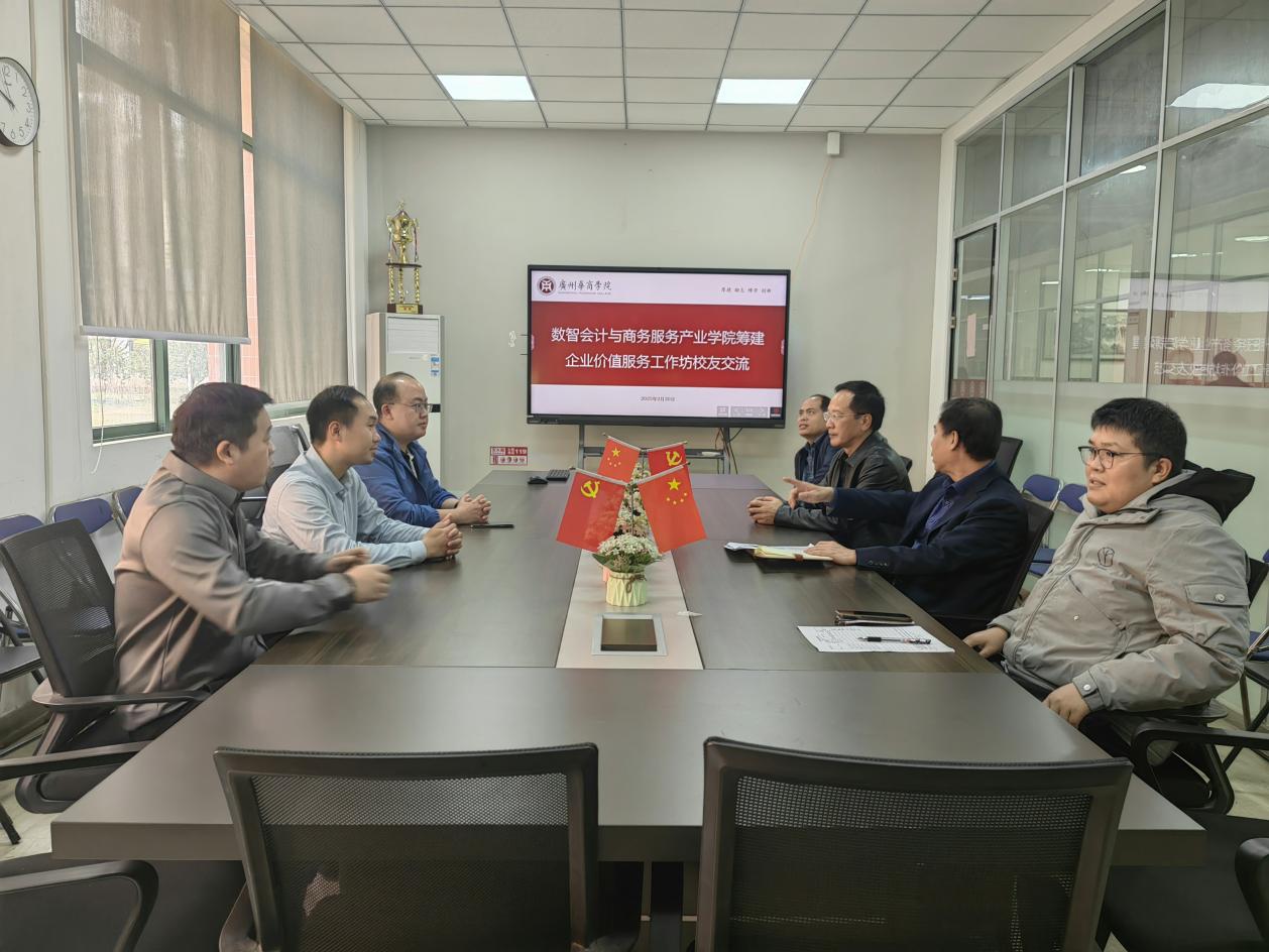 2月20日,广州华商学院会计学院召开企业价值服务工作坊筹建洽谈会。会计学院院长姚凤民、院党委书记兼数智会计与商务服务产业学院执行院长刘善球、院党委副书记兼副院长陈少鸿、产业学院副院长范卫星,会计学院学工办副主任兼会校友会秘书长杨烨瀚,与校友企业代表湛江市明灯文化科技有限公司总经理梁文旭(2017届毕业生)、广州市长志财务咨询有限公司总经理丁河杰(2023届毕业生)共聚一堂,就工作坊的定位、运营模式及合作路径展开深入探讨。