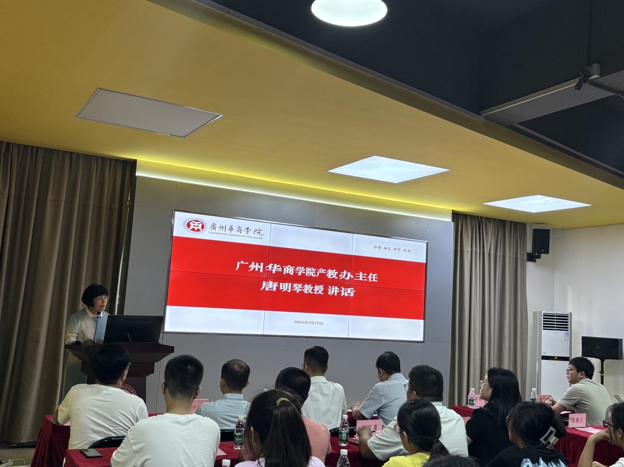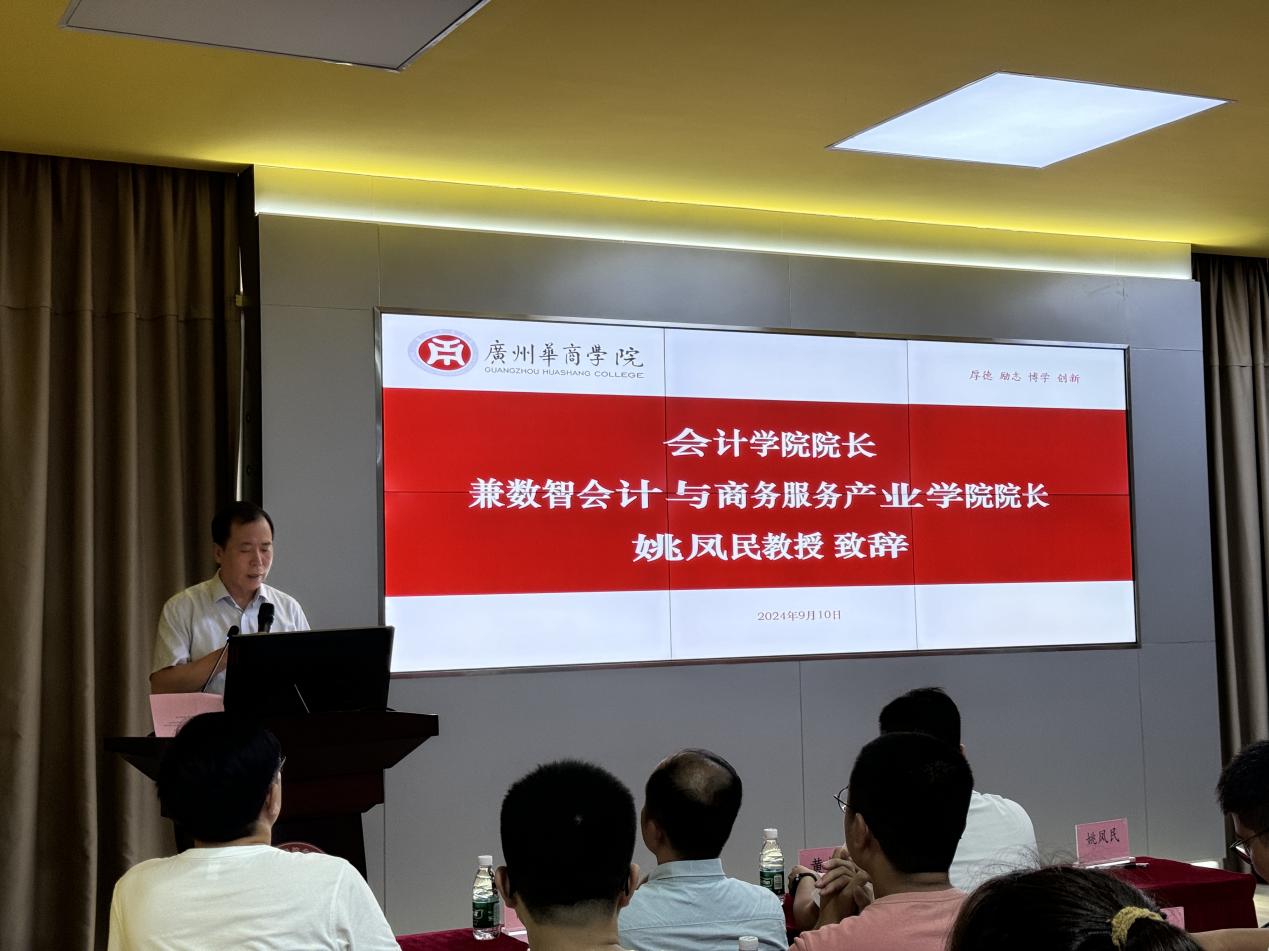 2024年9月10日,广州华商学院智能管理会计产业班开学典礼在会计学院会议厅隆重举行,与我院产业学院联合培养人才的用友新道公司校企合作总监黄梓伟先生、教学服务总监徐启超先生、学校产教办主任唐明琴教授、会计学院所有院领导、产业学院领导等出席典礼。典礼由会计学院副院长兼数智会计与商务服务产业学院执行院长刘善球教授主持。