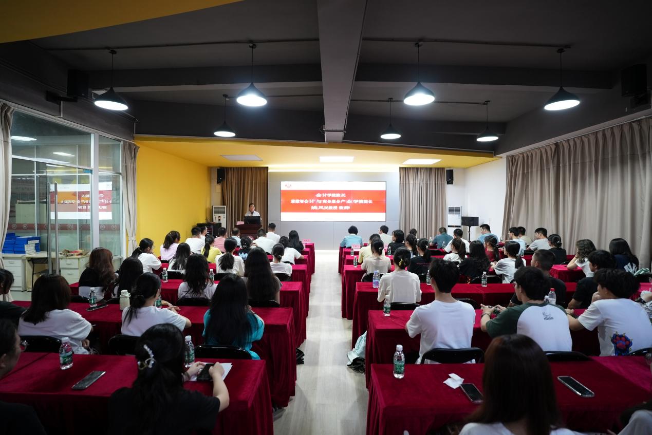 典礼先由会计学院院长兼数智会计与商务服务产业学院院长姚凤民教授上台致辞。姚院长代表会计学院全体教师欢迎新同学。强调产业班的成立是学院积极响应国家创新驱动发展战略、深化产教融合的重要举措。希望同学们珍惜机会,努力学习,成为华商智能会计的领头雁,发挥示范引领作用。随后,广州华商学院产教办主任唐明琴教授发言。唐明琴教授强调智能管理会计产业班是广州华商学院第一个示范班级,学校高度重视并给予支持。期望同学们能够秉持勤勉向学的态度,积极将大数据前沿技术与会计专业知识深度融合。充分借助这一零距离接触的优质平台,脚踏实地、稳扎稳打地掌握会计知识,在持续的探索与实践中砥砺前行,不断开拓进取,勇攀知识的高峰。接着新生代表麦楚颖同学上台发言。她以一名新时代青年的视角,表达了对智能管理会计产业班的无限憧憬和坚定信心。最后,产业学院企业教师代表,用友集团新道科技股份有限公司教学服务总监徐启超先生,为大家带来了精彩的产业实践分享。