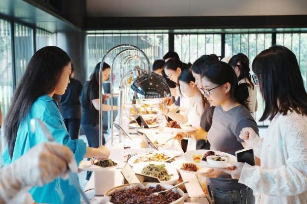 晚餐期间广州华商学院学生分享参观“十如”园林的感受