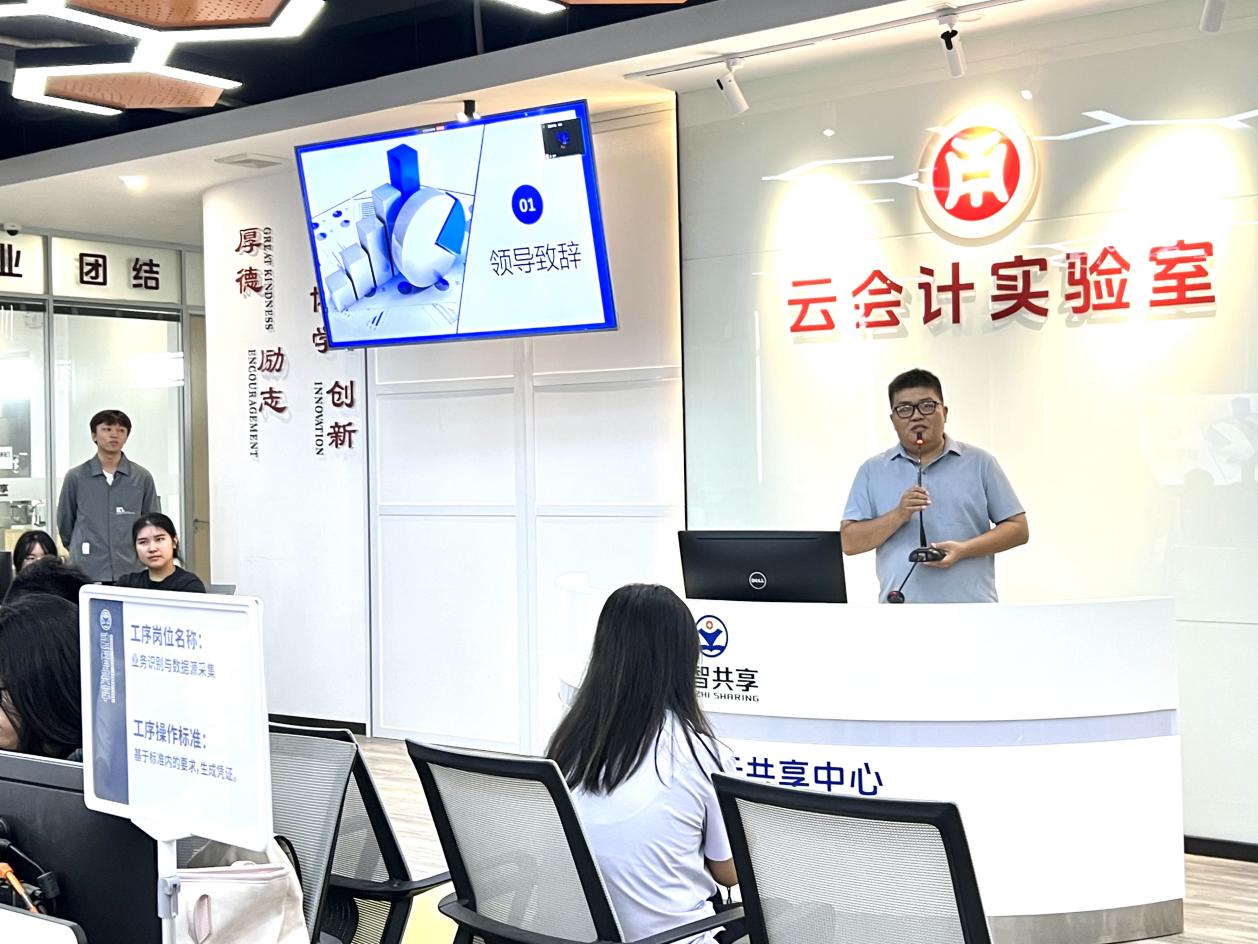 开班仪式伊始,周书域副院长首先欢迎四个班同学来到产业学院,周院介绍了会计学院四位一体的实践教学体系,重点阐述了华商云会计产业学院的内涵和功能定位,从人才培养、专业建设、课程开发、平台共建、团队共育五个方面介绍产业学院打造高水平专业群的整体设计思想,为产业更新培育高素质、高技能人才。