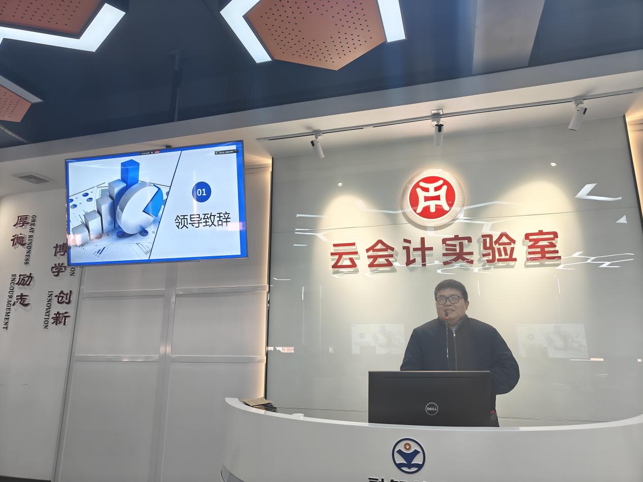 仪式上,肖文英老师首先代表会计学院致辞。她向加入第八期产业学院的同学们表示热烈欢迎,并强调会计作为企业经营的“财务基石”,其核心在于扎实的实操能力。肖老师指出,本次实训不仅是理论知识落地的重要载体,更是同学们从校园走向职场的关键桥梁。她鼓励大家珍惜为期一个月的实战机会,沉心钻研账务处理、税务申报等核心技能,紧跟教师指导,锤炼专业本领,培养严谨细致的职业素养,并期待同学们在明年毕业时都能找到理想的工作。